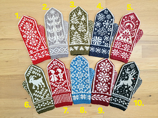 Mudden är stickad med 3,00 mm och själva vanten är stickad på 3,50 mm.