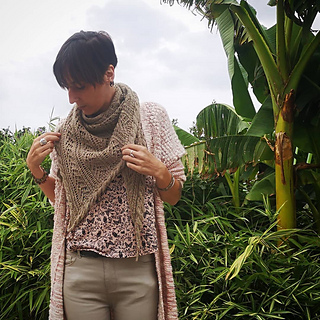 It all start s with one is an asymmetric triangle shawl covered with 2 simple and easy-to-knit lace patterns and bordered by a cable. Stitches are increased every right side row and the lace patterns are gradually integrated as the shawl grows. To finish, the cable border on the right side is knit perpandicular with short rows - without having to pick up any stitches. Charted and written instructions are provided.