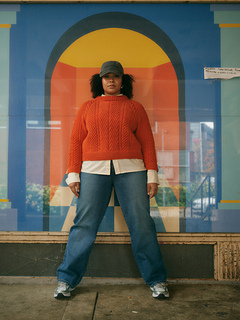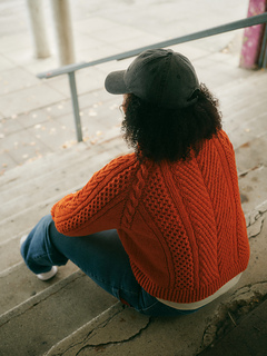 The pullover is worked top down in the round. You begin by casting on at the back, working raglan shaping in the textured pattern to create the upper backpiece. After completing the back neck shaping, you continue to working the raglan shaping and texture for the rest of the yoke towards the underarm.