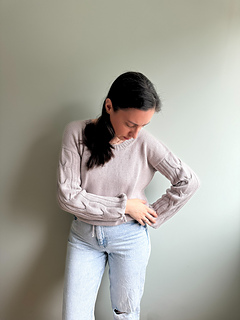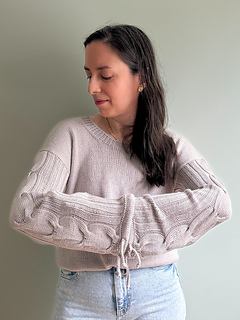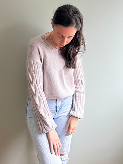 Finally, the sleeves are worked in the round with a cable pattern. The sleeves finish with the same type of hem as the body.