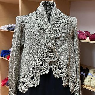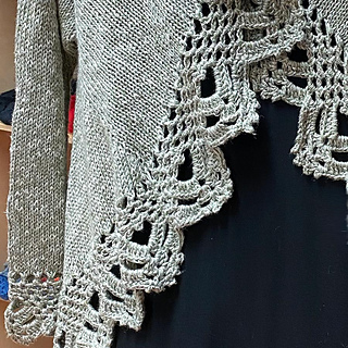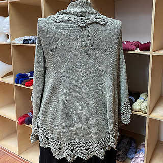 Timeless is a fancy knitted cardigan with an elaborate crochet edging. It is knitted from the middle of the back outward in stockinette stitch. Due to its construction, it can be easily adapted to fit any individual size – even without swatching. Plus, it is fully seamless.