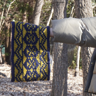 Judy’s Magic Cast On で MC と CC の 2 色で作り目をし、 裾側から輪で編み始めます。 ダブルニッティングで模様を編み、最後はメリヤスはぎで綴じます。