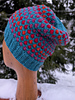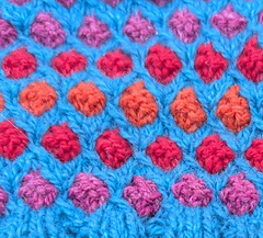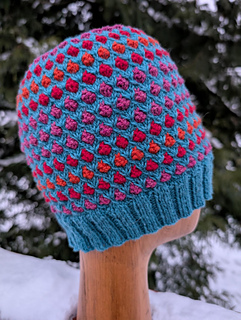 The slip stitch patterning makes a thicker and warmer fabric, perfect for windy, wet day. We see many of these on the coast!