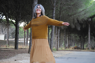 El Jersey Afrodita está construido con la técnica Top Down y tejido en una sola pieza, sin