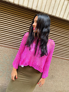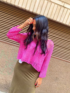 Este jersey se teje en redondo comenzando por el bajo, hasta llegar a la separación de las piezas (delantero y espalda) y una vez terminado el cuerpo, haremos las mangas en caso de querer tejerlas.