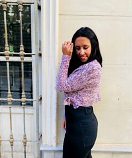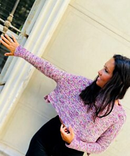Será un jersey con corte ancho y manga entallada, largo ajustable al gusto de cada tejedor o tejedora aunque el diseño inicial será tipo croptop.