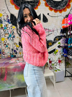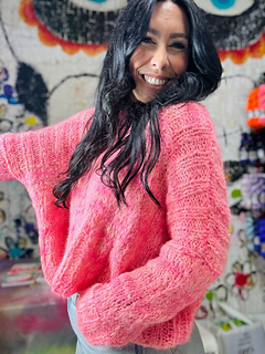 Este jersey se trabaja en redondo, comenzando por el elástico y tejiendo todo el cuerpo hasta llegar a la separación de las mangas. A partir de ahí, tejeremos en abierto y coseremos los hombros para posteriormente sacar las mangas y rematar el cuello.