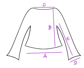 E – Largo de manga 38 cm.