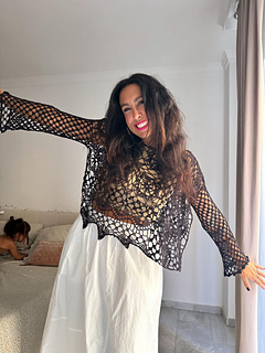Siempre puedes hacer más largo o más ancho el jersey, añadiendo más granny’s. Todo se explica en el paso a paso que encontrarás en el patrón.