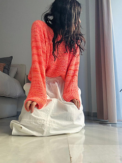 Este jersey es un diseño top-down, es decir, se teje comenzando por el cuello hacia abajo, con manga ranglán y sin costuras.