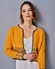 This elegant cardigan is knitted flat, beginning with a garter stitch border on the lower body and sleeve edges, followed by a flower-patterned mosaic band. The rest of the cardigan is knitted in moss stitch. Sandra Nesbitt’s design has set-in sleeves and a gently curved neckline. Once the pieces are seamed, stitches are picked up around the neck and along the front edges and worked in garter stitch for a neat finish.
