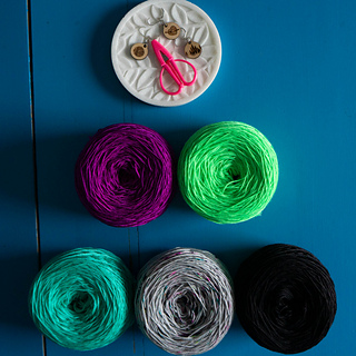 This pattern is made with 5 skeins of fingering weight yarn. The pattern includes a table, included in clue #0, to help you customize your shawl in one, two or many different colors!
