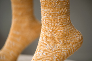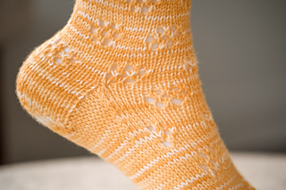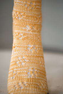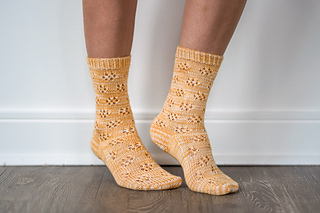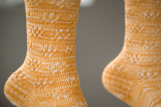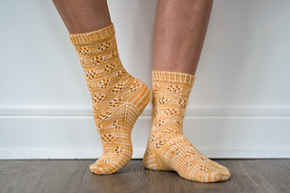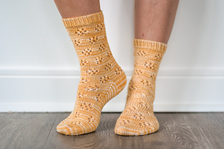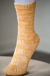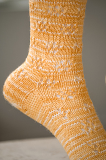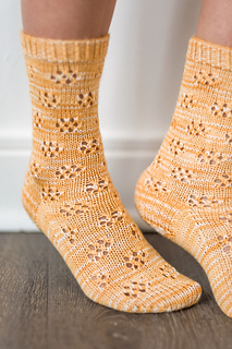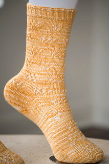 Let your feet bloom in style with the Jonquil Socks! This delightfully simple, lace knit sock features an all-over eyelet pattern that looks like a field of delicate flowers. The easy-to-master lace knitting pattern is formed with basic stitches, including knit, yarn over, and knit two together. Knit these socks in subtle solids or variegated yarns, and watch the sweet, floral motifs bloom. Both beginner sock knitters and experienced knitters will love creating this delicate design.