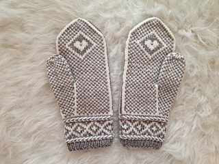 Storleken passar en mellanstor damhand och vanten blir ca 10 cm bred.