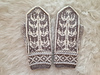 Mudden är stickad med 3,00 mm och själva vanten är stickad på 3,50 mm.