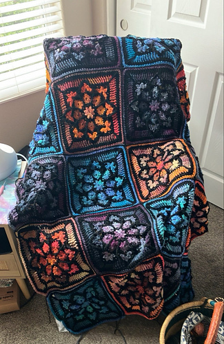 New in 2024: I updated the pattern for a self-striping yarn, Prism by Mary Maxim. File download includes the original version with charts and photo tutorial and the “Mary Maxim” version which changes the last 3/4 rounds to better compliment the self-striping yarn. (After the central flower, there is one round of trebles instead of two rounds of doubles, so you can choose your favorite version.)
