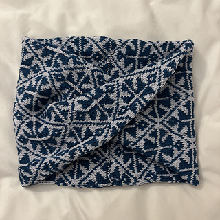KalaPeaLuu Cowl is a short tubular cowl, started with a provisional cast-on using waste yarn, knitted in the round and seamed with kitchener stitch grafting at the end. Before grafting just turn the end 180 degrees to get a little twisted mobius cowl. This seamless finishing allows you to easily customize the length of the cowl. You can make it small and snug, or continue until it is long enough by knitting more repeats or until you run out of yarn. Alternatively, you can use a standard cast on which can be bound off when finished, and the two ends sewn together.