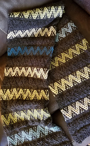Note: The scarf shown in blues is the prototype for the final Kalni Scarf. The knit/purl section in the final version is worked in double moss stitch.
