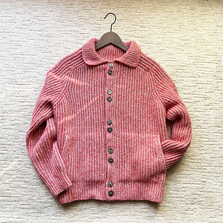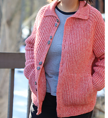 Is it knit or is it crochet? Designed to mimic the classic ribbing of traditional knitwear, this piece is actually worked in a specialized crochet stitch! The cardigan features a tailored collar, raglan sleeves, and deep-set pockets. A perfect blend of modern crochet style and classic garment construction.
