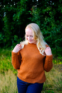 Kastanja Sweater is knitted seamlessly top down, starting at the neckband. The sleeves and body are separated after shoulder increases and knitted separately.