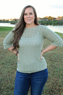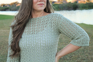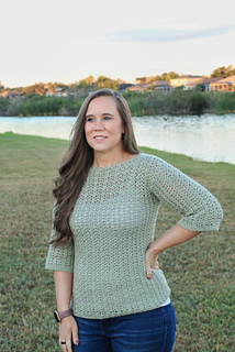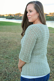 The Katie Blouse uses the same beautiful stitch combo as the Katie Cardi and the other pieces in the Katie Collection! This blouse is made with a lightweight dk yarn to wear during the spring or fall months. It is made from the bottom up, with sleeves added at the end. The shaping of the blouse provides a gorgeous look for every shape and size!