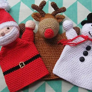 Haakpatroon Kerst Handpoppen - Deze kerst handpoppen zijn ontworpen door Jolanda van De HaakSTER van Nederland! Met de vrolijke ontwerpen van de sneeuwpop, rendier en kerstman handpop kun je je kids urenlang vermaken.