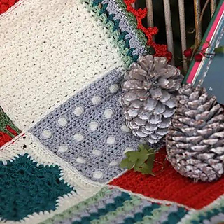 Haakpatroon Kerstdekentje - Dit feestelijke dekentje is ontworpen door Linda van De HaakSTER van Nederland! Het dekentje is gehaakt met Stylecraft Special dk en bestaat uit vierkanten met verschillende steken en technieken.