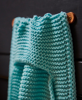 This Towel is worked flat end to end, with a keyhole in the middle for easy hanging. The keyhole is created by first binding off and then casting on in the middle of the row. All stitches are slipped purlwise with the yarn in front.