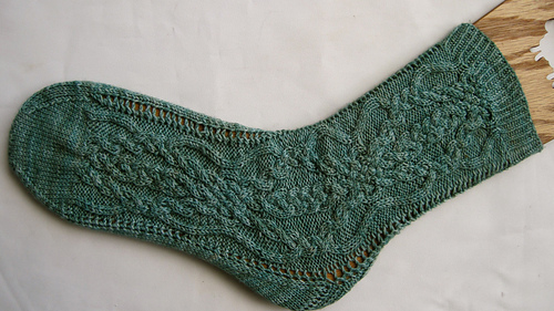 The sock pictured here was made with Malabrigo’s sock yarn in colorway, Pascal.