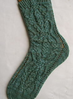 This pattern is for a pair of ornately cabled socks. The cable itself is a Canadian cable that is just perfect for socks. The cable comes to us from the creative mind of Annie Maloney. The focal cable is one that pulls in slightly, easily fixed by going up one needle sizes, or eliminating one vertical repeat after knitting your top ribbing.