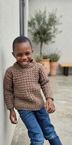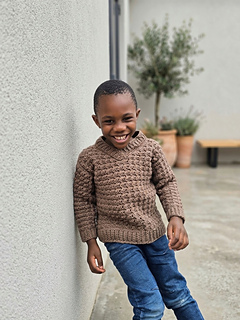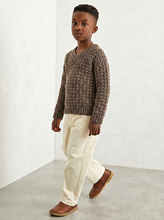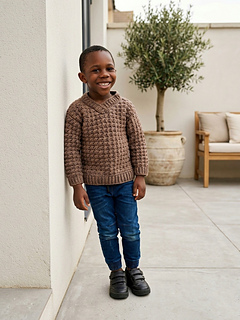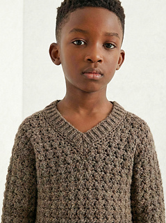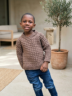A modern kids crochet V neck sweater featuring a textured stitch pattern and a comfortable, wearable fit. Designed with clear instructions and multiple sizes, this pattern is perfect for beginners and intermediate crocheters.