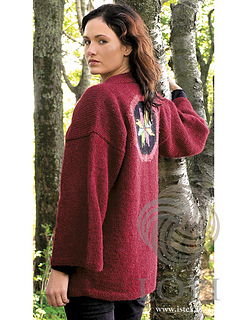 The pattern named “Kim” features two designs: a blue cardigan and a red one. Both are knitted using Léttlopi 50g balls of yarn from Ístex in Iceland. The cardigan also showcases a beautiful motif on the back.