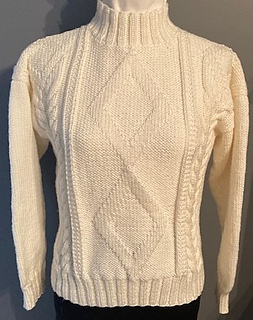 This sweater starts from the shoulders working down. Rated experienced but after the first set up row it’s really quite easy. I tried to make it easy to read. Fun one to make.