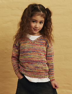 Schnell gestrickt und perfekt zum lässigen Überziehen wenn es zwischendurch mal kühler wird: Der tiefe V-Ausschnitt und das bunte Printmuster sind die besonderen Kennzeichen von #kinderpullover_gerrit. Der sportliche Sweater kann in den Größen 128 bis 146 nachgestrickt werden.