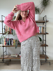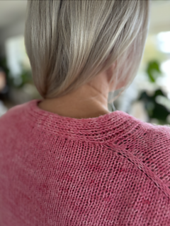 Mallineule: 2 (2, 3, 3, 3) (3, 4, 4, 4) vyyhtiä Aara Yarn Hellu (400 m / 50 g, 53 % super baby alpakka, 34 % silkki ja 13 % kashmir) sävyssä Ruusu ja 2 (2, 3, 3, 3) (3, 4, 4, 4) vyyhtiä Aara Yarn Koko (400 m / 100 g, 50 % superwash-käsittelemätön merinovilla, 50 % silkki) sävyssä Ruusu.