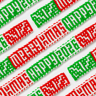 Knit Hello Season’s Greetings is your next favorite holiday project. Use the typographic knitting banner as a tree decoration, knitted gift ribbon or simply a fun wall decoration.