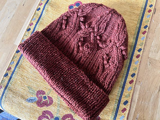 A richly textured hat featuring bobbles, cables, twisted stitches, and an intelligent ribbing that stays beautifully in place. It’s not the easiest project — you’ll need a bit of knitting experience — but it’s absolutely worth the effort. The result is a stunning, dimensional fabric full of character and charm.