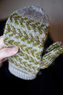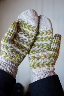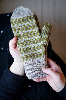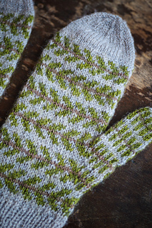The Korpi mittens feature a charming vine-inspired colorwork pattern. With floats that are just two stitches long, this design is perfect for beginners and simple to knit. Plus, you can use leftover yarn for this project!
