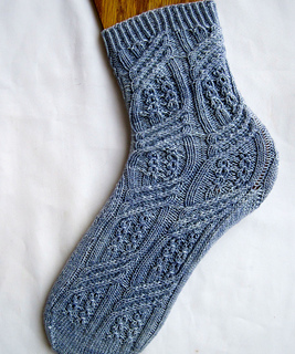 The sock pictured here was made with Malabrigo’s Ultimate sock yarn, in colorway, Polar Morn, and was expertly tested by alicia.gourley@gmail.com