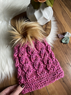 Beautiful cables shine in this elegant beanie hat.