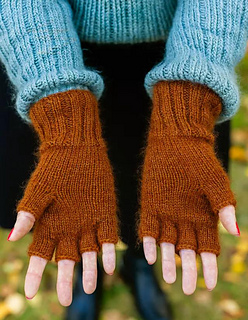 Kynsikkäät pitävät kädet ja ranteet lämpiminä, mutta sormet jäävät vapaiksi. Nämä kynsikkäät neulotaan ilman lisäyksiä helpolla aukkopeukalolla. Ohjeessa on kaksi kokoa: naiselle ja miehelle.