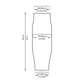 Sizes: 1 (2) with leg circumference 30 (38) cm / 12 (15)” at widest point, height: 39 cm / 15.5”.