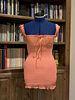 It is finely knitted in silk yarn in a modified rib stitch. The neck, armscye, and hem edges are finished with crochet, and the neck is threaded with ribbon.