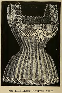 This pattern is for a knitted vest, a Victorian undergarment. It was published in Butterick’s The Art of Knitting in 1892 and republished in Dainty Work for Pleasure and Profit in 1902. It may have been published elsewhere as well.