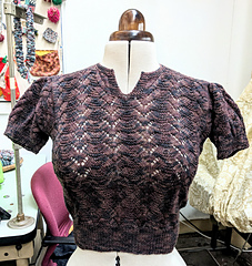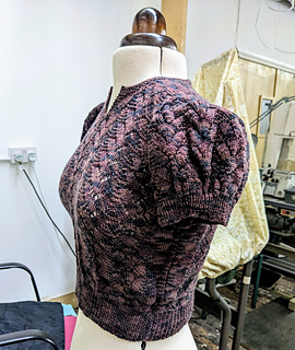 Length from top of shoulder 19” (48,5cm). Finished measurements all round at underarm 36” (91,5 cm). Length of sleeve from underarm 7” (18 cm).