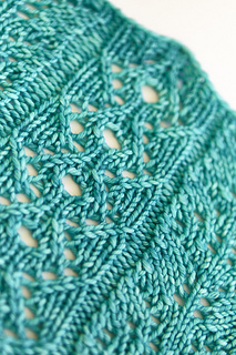 12.5 stitches and 20.5 rows = 10 cm / 4 inches in Stitch Pattern B – Island Hopping, blocked.