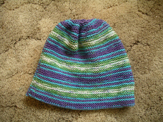This comfy garter stitch hat is the perfect first hat project. The self-striping shades of Sock-Ease automatically change color, so the yarn does all of the striping work for you. (Lion Brand Yarn)