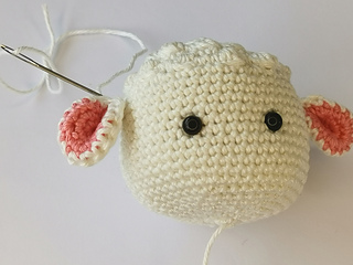 Algemene informatie: deze rammelaar bestaat uit 1 hoofd, 2 oren en een lapje om de ring. De oren worden vastgenaaid op het hoofd. Het lapje wordt om de ring genaaid en het hoofd wordt op het lapje genaaid.