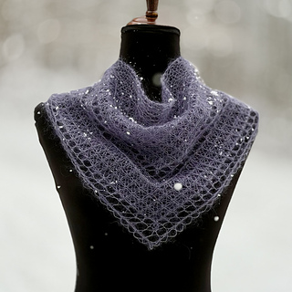 Rauma Alpaca Silk, 65% alpaca, 25 % silk and 10 % merino, 219 y (200m)/25 g, or similar super fluffy brushed alpaca, cashmere or mohair lace yarn. For scarf size as shown you need 109 y (100m). One ball (25g) makes 2 small scarves or 1 larger.
