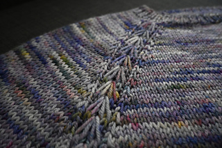 Yarn: Expression Fiber Arts - Dewy DK. 70% Superwash Merino Wool, 20% Nylon, 10% Silk. 250 yards per 113 grams. “Moonlight Pearl” colourway.